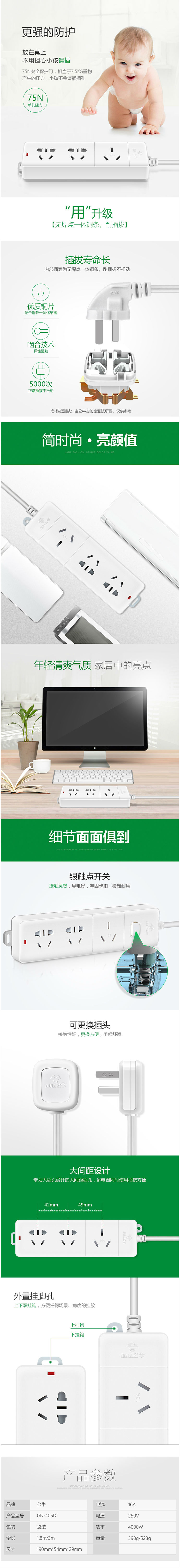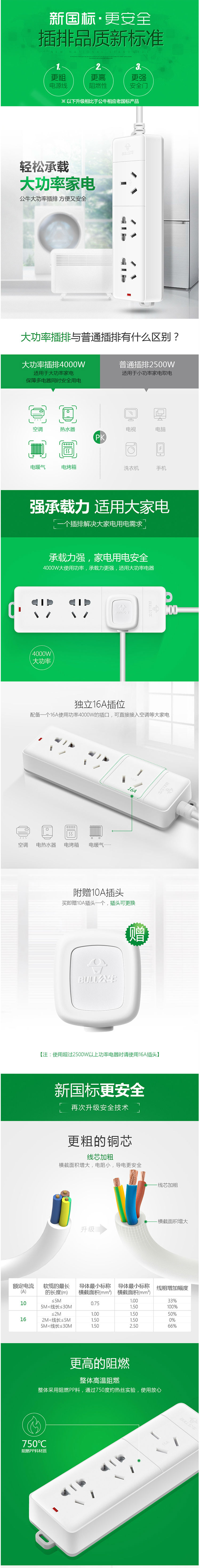 商品名称:公牛新国标 405D 1.8米-3位 插排 1.8米 电源插座