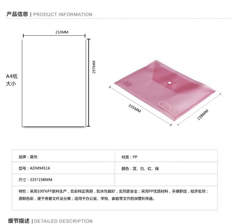 商品名称:晨光方格纽扣袋ADM94516 12个装