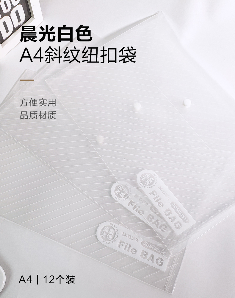 晨光斜纹纽扣袋白ADM94584/94517白 12装