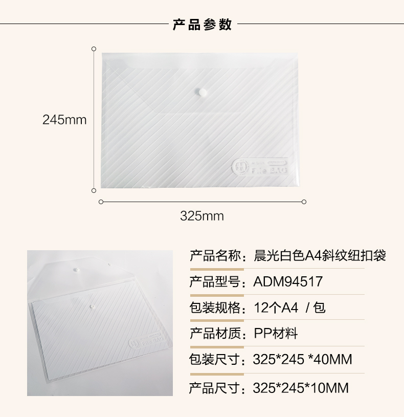 商品名称:晨光斜纹纽扣袋白ADM94584/94517白 12装