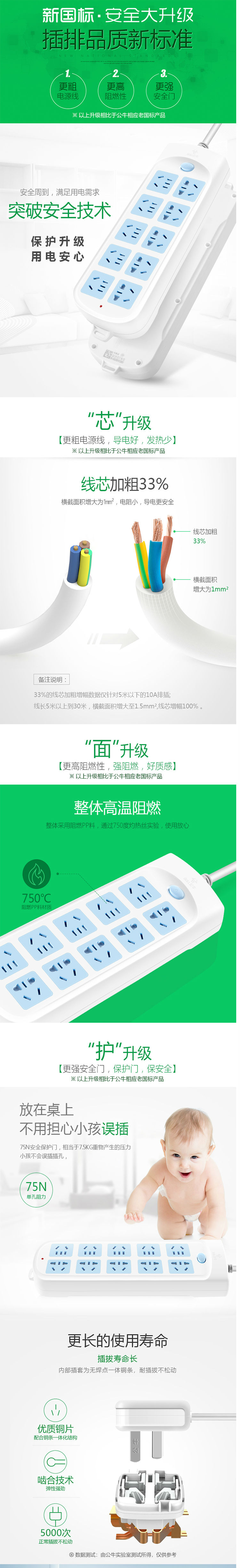 商品名称:公牛新国标 605 5米-10位 插排 5米 电源插座