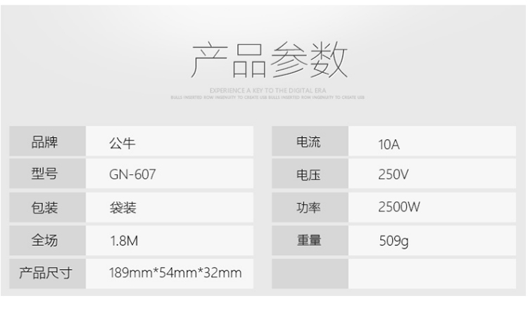 商品名称:公牛新国标 607 1.8米-4位 插排 1.8米 电源插座