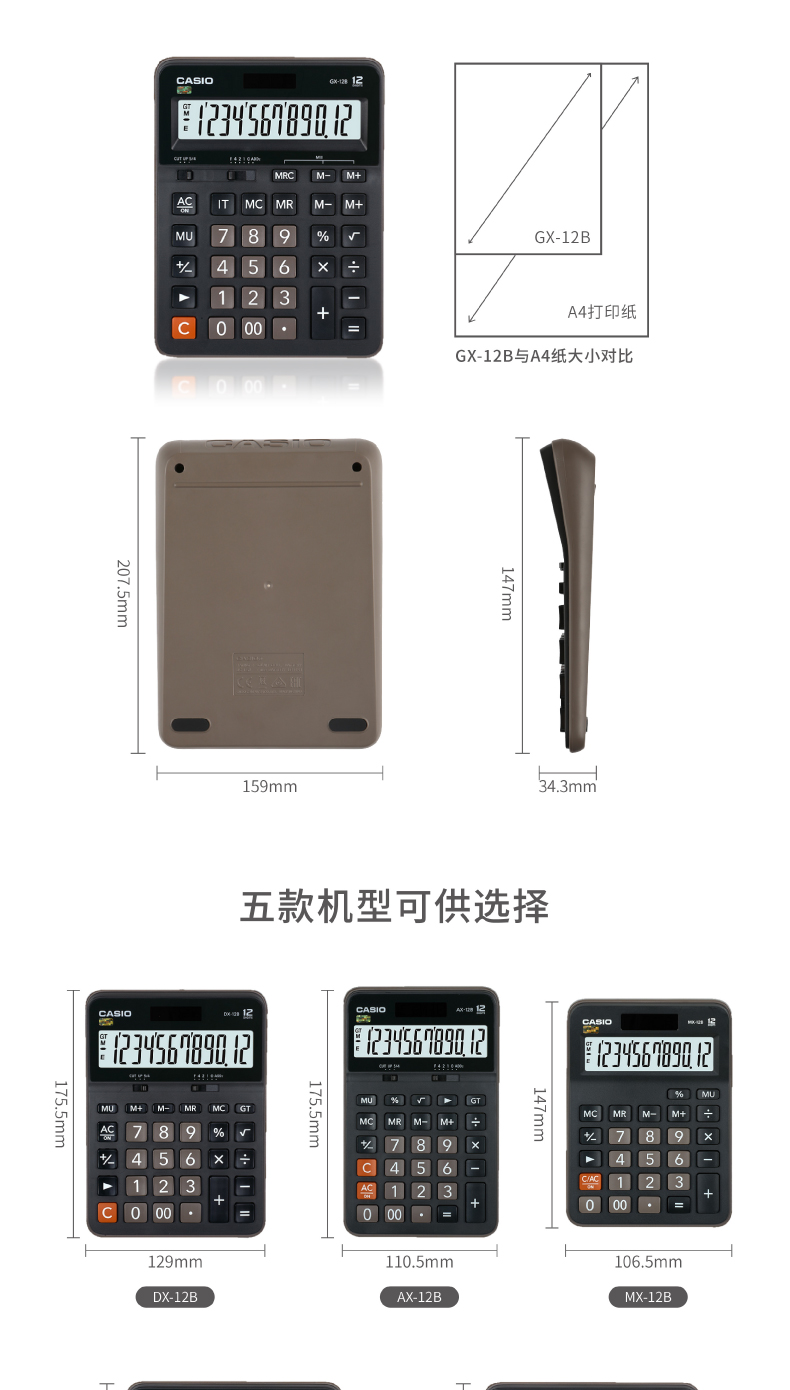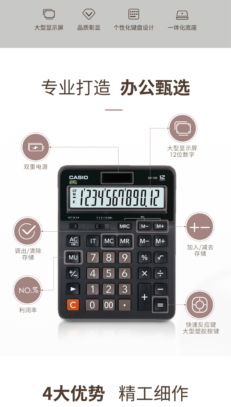 商品名称:卡西欧(CASIO)12位 办公计算器 GX-12B