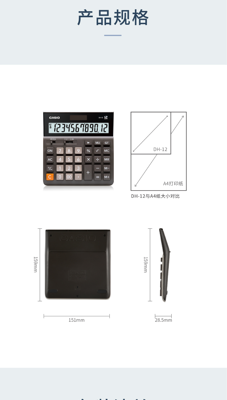 商品名称:卡西欧(CASIO)12位 办公宽屏计算器 DH-12-WE
