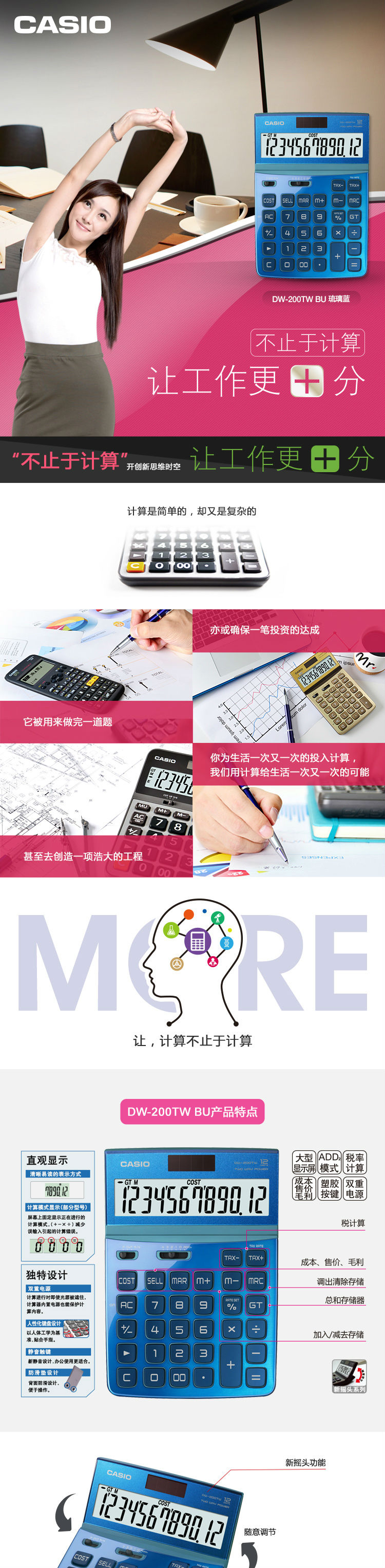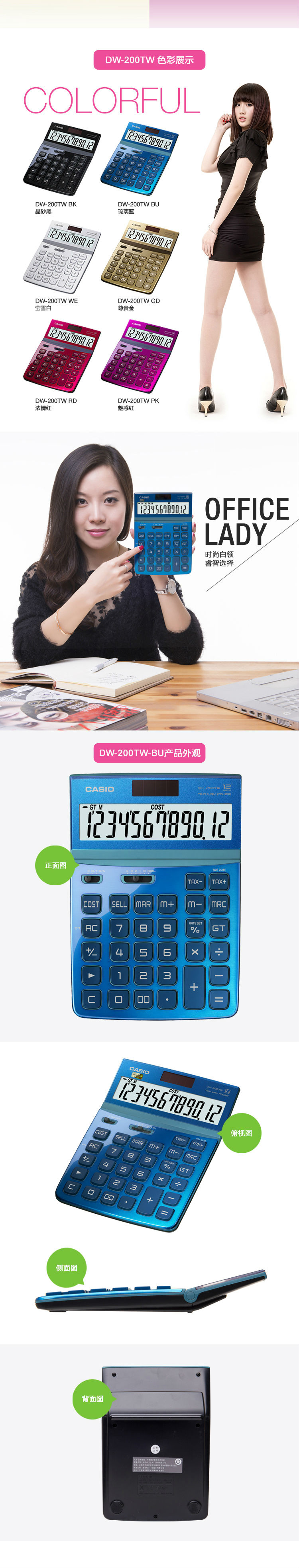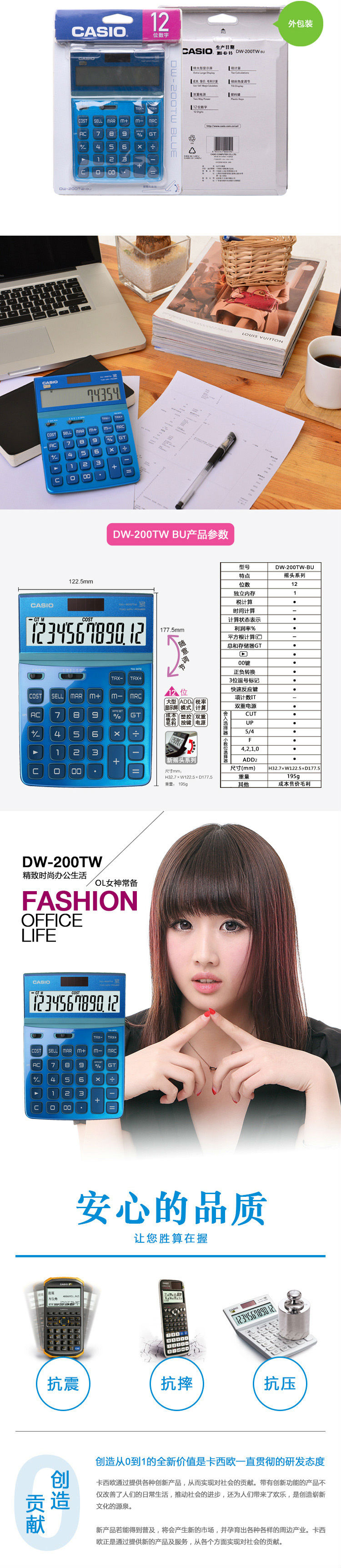商品名称:卡西欧(CASIO)12位 办公彩色计算器 DW-200TW-BU