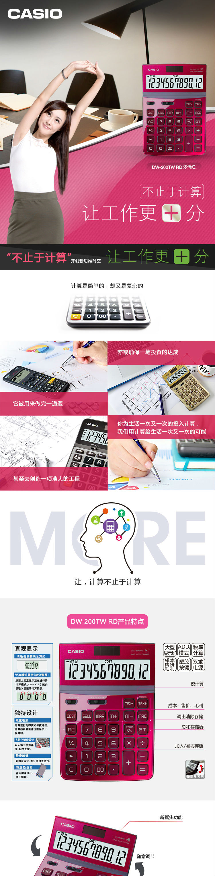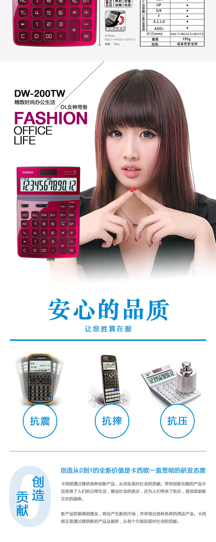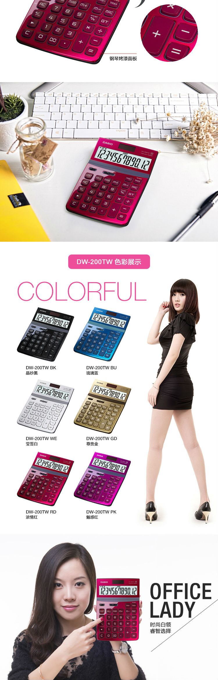 商品名称:卡西欧(CASIO)12位 办公彩色计算器 DW-200TW-RD