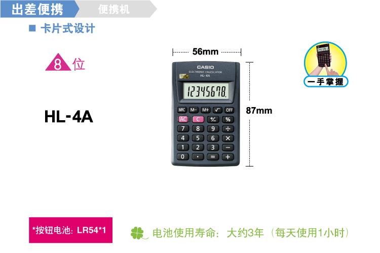 商品名称:卡西欧(CASIO)8位 便携计算器 HL-4A