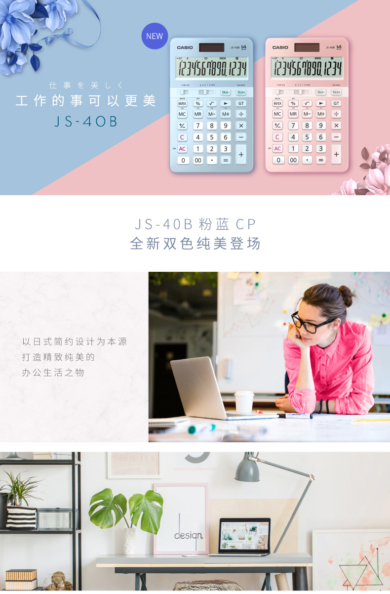 卡西欧(CASIO)14位 办公时尚计算器 JS-40B-BU