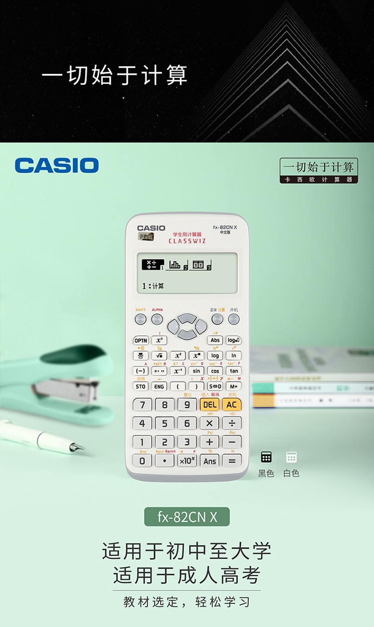 卡西欧(CASIO)10位 一般函数计算器 FX-82CN X-WE