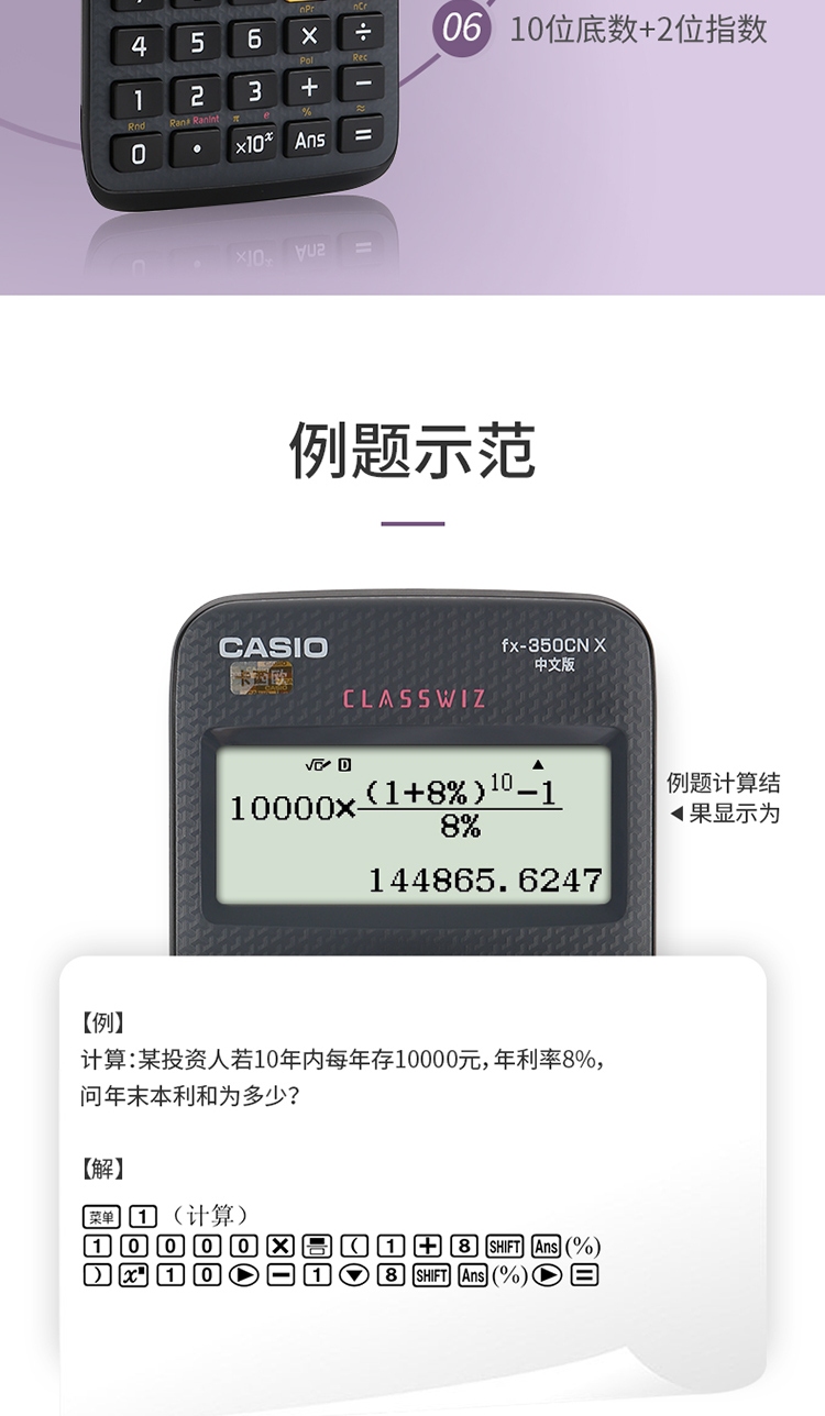 商品名称:卡西欧(CASIO)10位 一般函数计算器 FX-350CN X