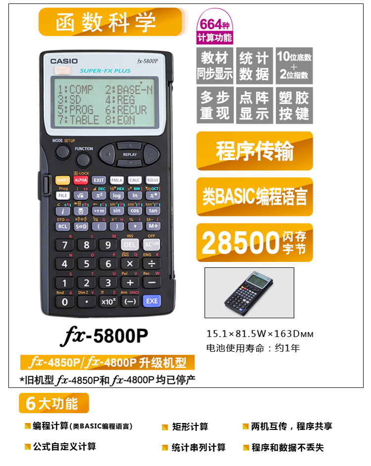 商品名称:卡西欧(CASIO)10位 工程计算器 FX-5800P