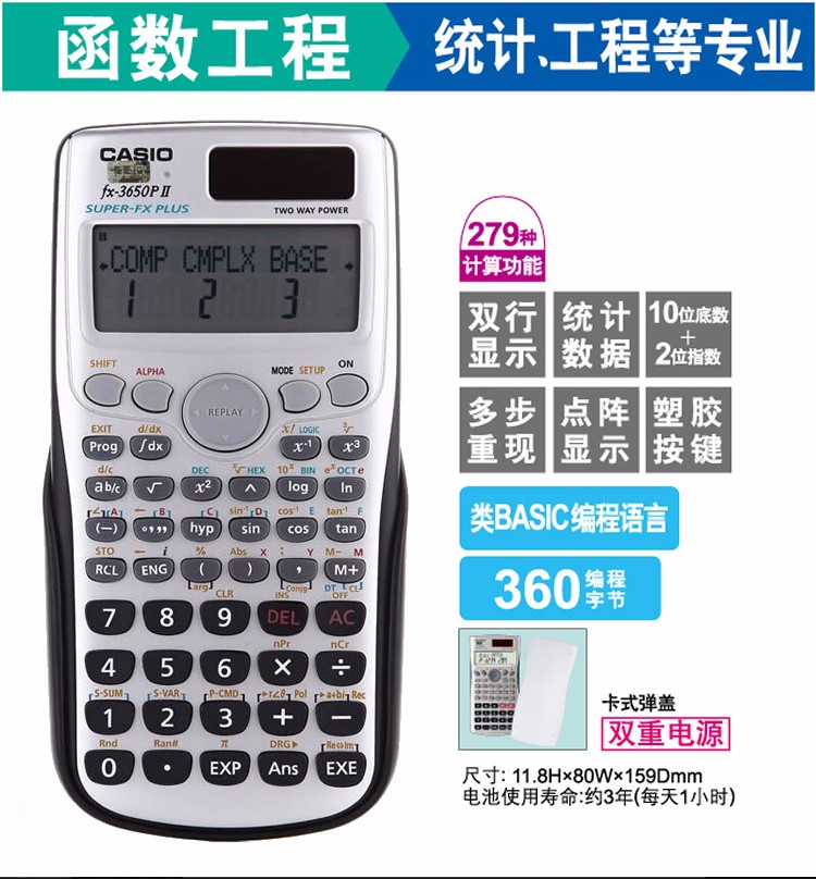 商品名称:卡西欧(CASIO)10位 工程计算器 FX-3650PII