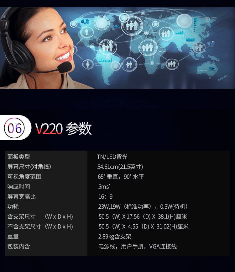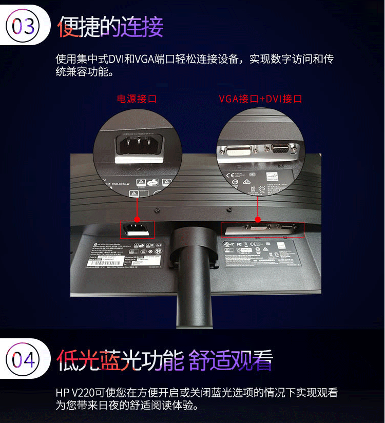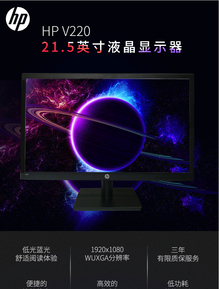 商品名称:惠普(HP)V220 21.5英寸 LED商用液晶显示器 办公电脑高清显示屏