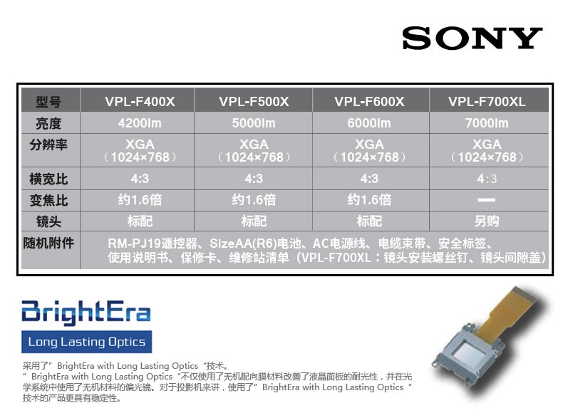 商品名称:索尼(SONY)投影仪 商务投影 高亮工程投影机 VPL-F500X(5000流明 标清) 官方标配