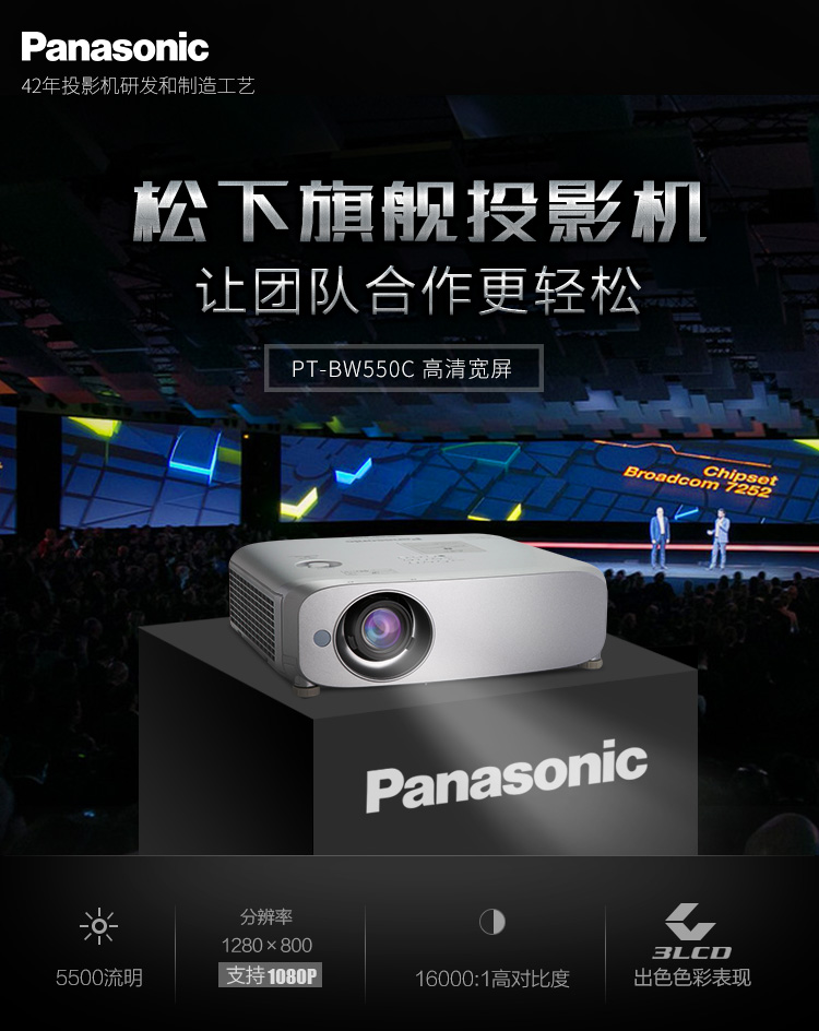 商品名称:松下(Panasonic)PT-BW550C 投影仪 投影机办公(高清宽屏 5500流明 WXGA HDMI接口)
