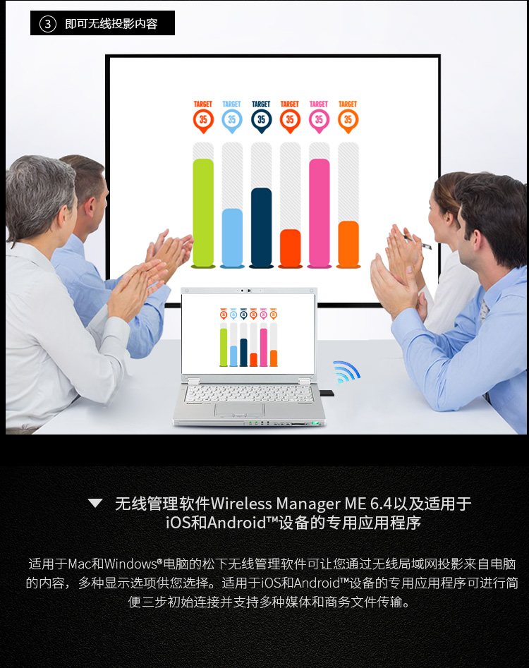 商品名称:松下(Panasonic)PT-BW555NC 投影仪 投影机办公(高清宽屏 5500流明 WXGA无线)