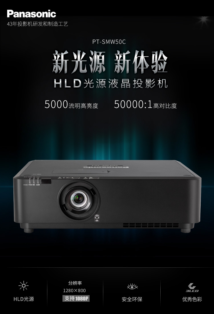 商品名称:松下(Panasonic)PT-SMW50C 投影仪 投影机办公(5000流明 HDMI 1.6倍变焦 新光源)