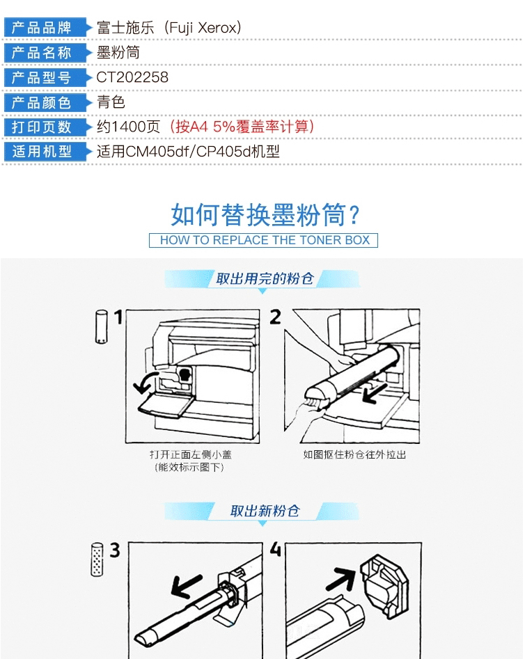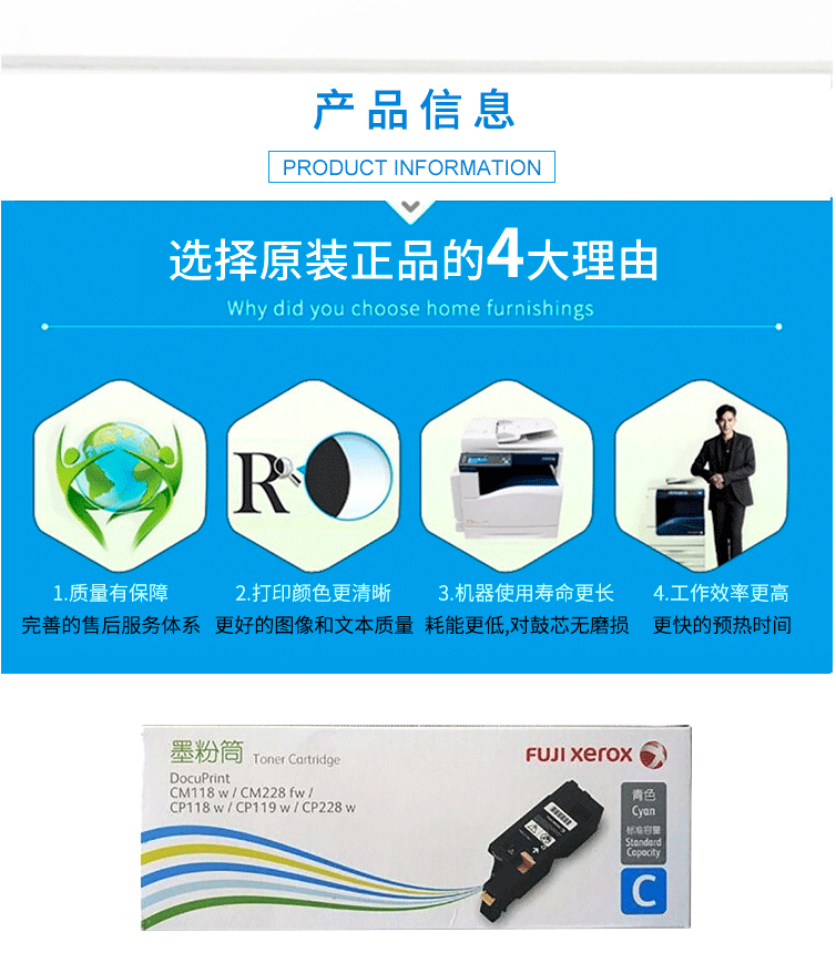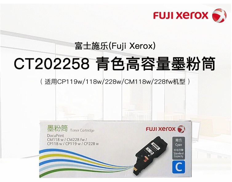 商品名称:富士施乐(Fuji Xerox)CT202258青色大容量墨粉盒(适用于:DocuPrint CM118w/CM228fw/CP118w/CP119w/CP228w)