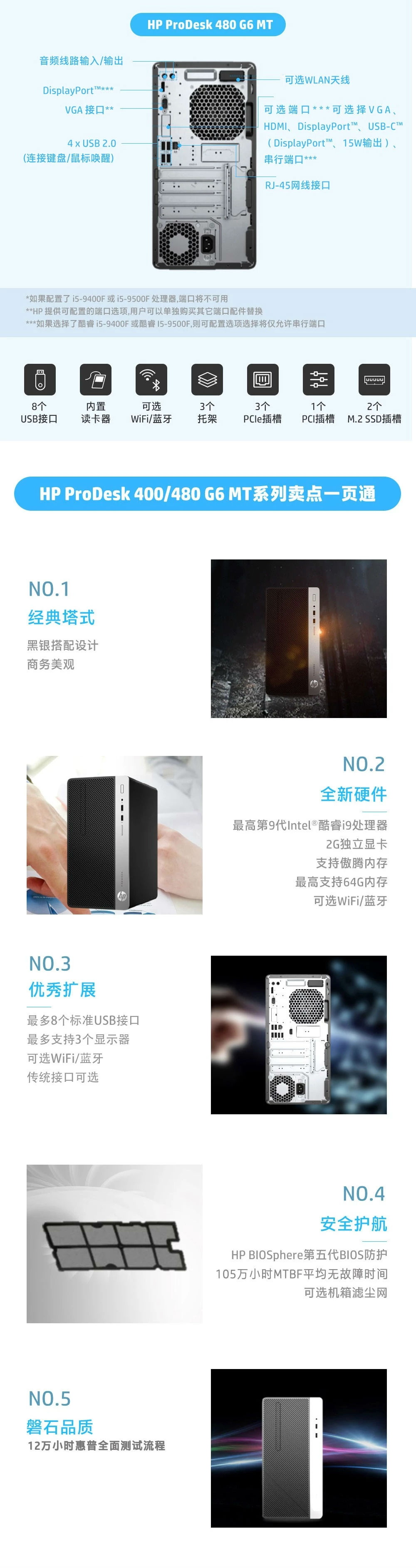 商品名称:惠普(HP) 商用台式电脑 480 G6 MT(B360主板芯片组/酷睿I5-9500/8G/512GSSD硬盘/Win10H/21.5英寸显示器) 三年上门售后
