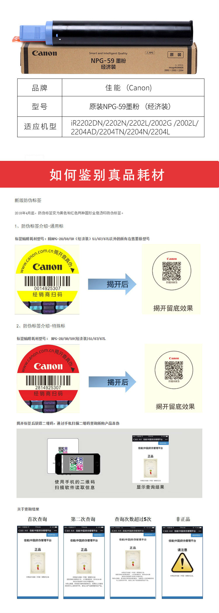 商品名称:佳能(CANON)NPG-59低容墨粉盒(适用于:iR2202L/2002G/2002L/2204AD/2204TN/2204N/2204L)