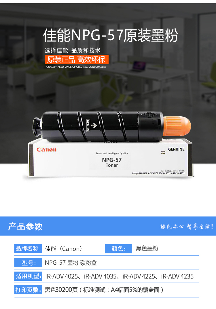商品名称:佳能(Canon)NPG-57原装黑色墨粉盒(适用于:iR4025;4035;4225;4235)