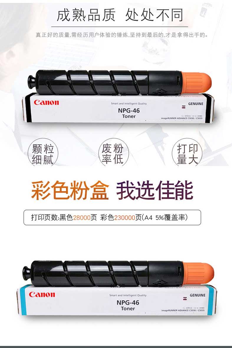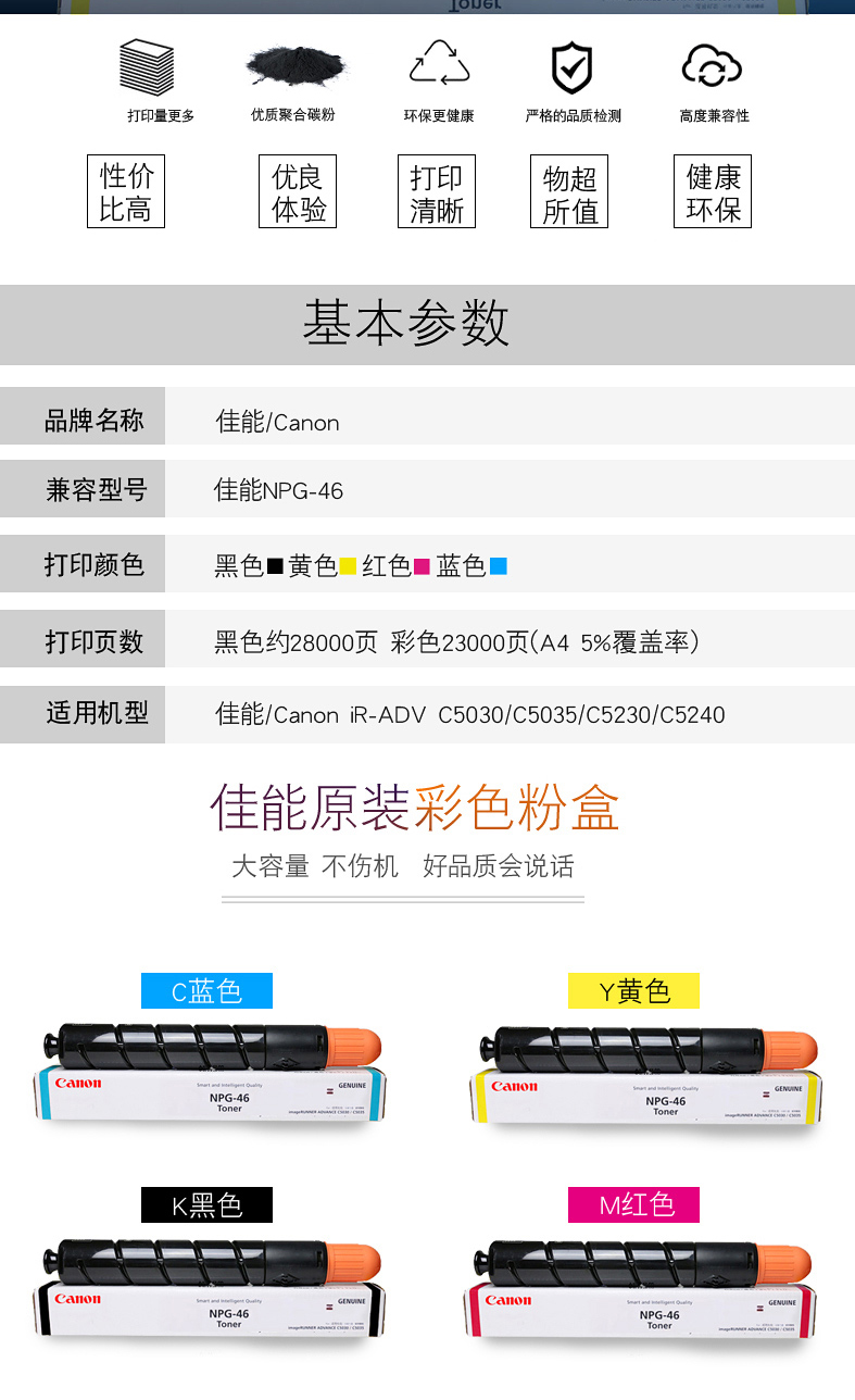 商品名称:佳能(Canon)NPG-46 Y 黄色墨粉盒(适用于:iR-ADV C5030、iR-ADV C5035、iR-ADV C5235、iR-ADV C5240)
