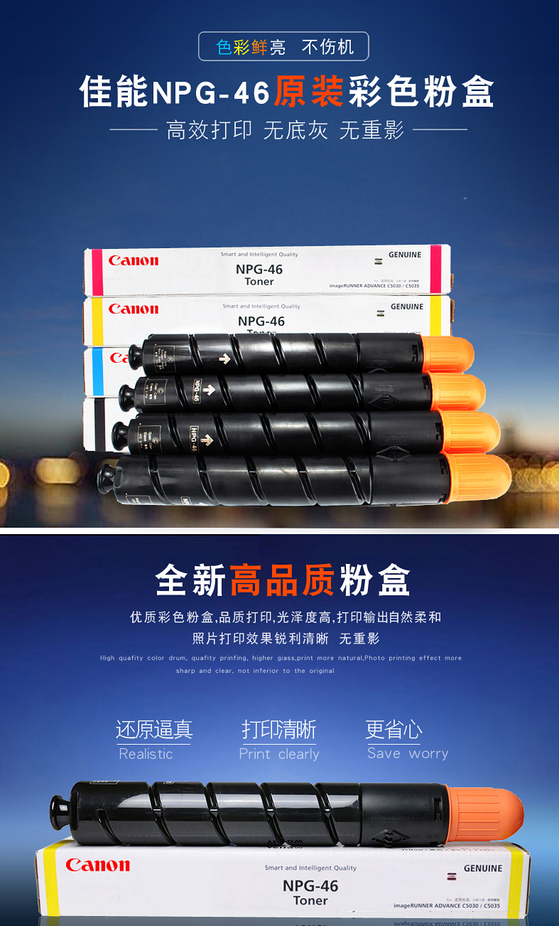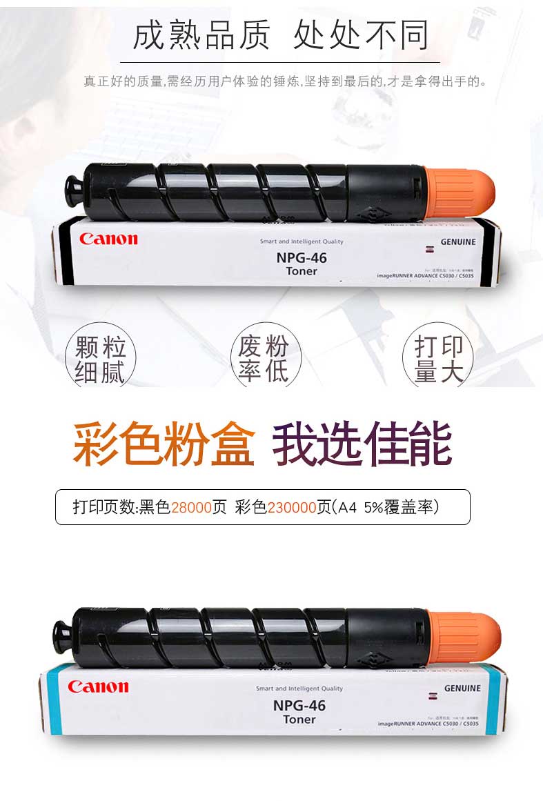 商品名称:佳能(Canon)NPG-46 C 蓝色墨粉盒(适用于:iR-ADV C5030、iR-ADV C5035、iR-ADV C5235、iR-ADV C5240)