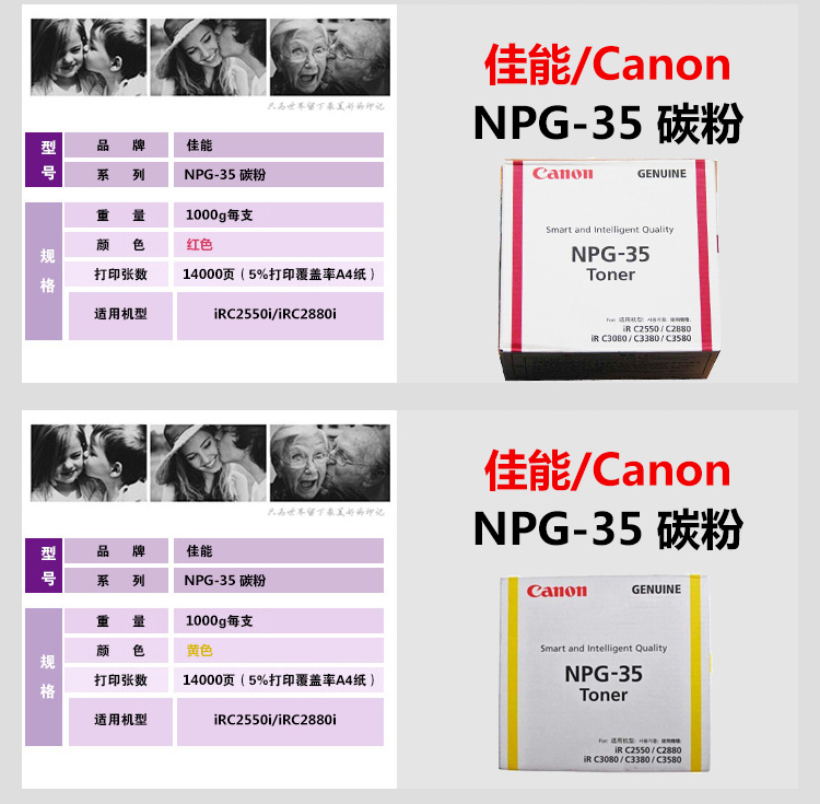 商品名称:佳能(Canon)NPG-35 BK 黑色墨粉盒(适用于:iR C3380i、iR C2880i、iR C3580i、iR C3080i、iR C2550i)