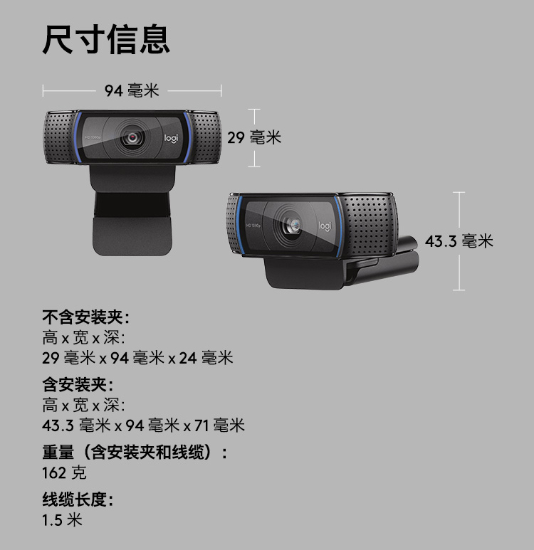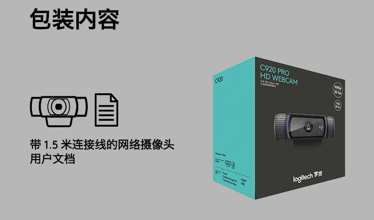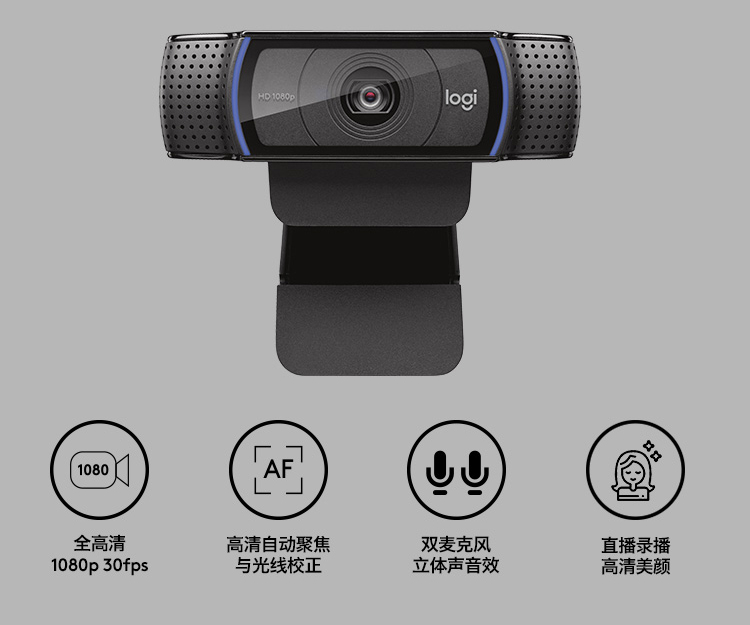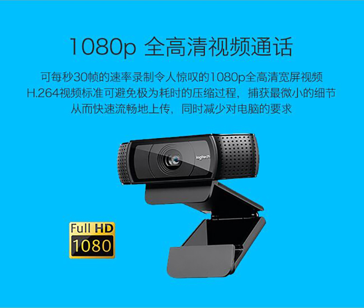 商品名称:罗技(Logitech)C920 Pro台式电脑笔记本高清摄像头内置麦克风 网课直播