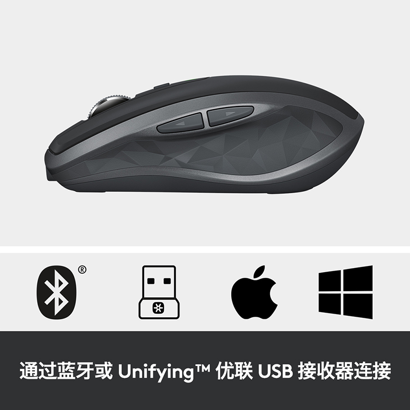 罗技(Logitech)MX Anywhere 2S 鼠标 无线蓝牙鼠标 办公鼠标 右手鼠标 优联 儒雅黑