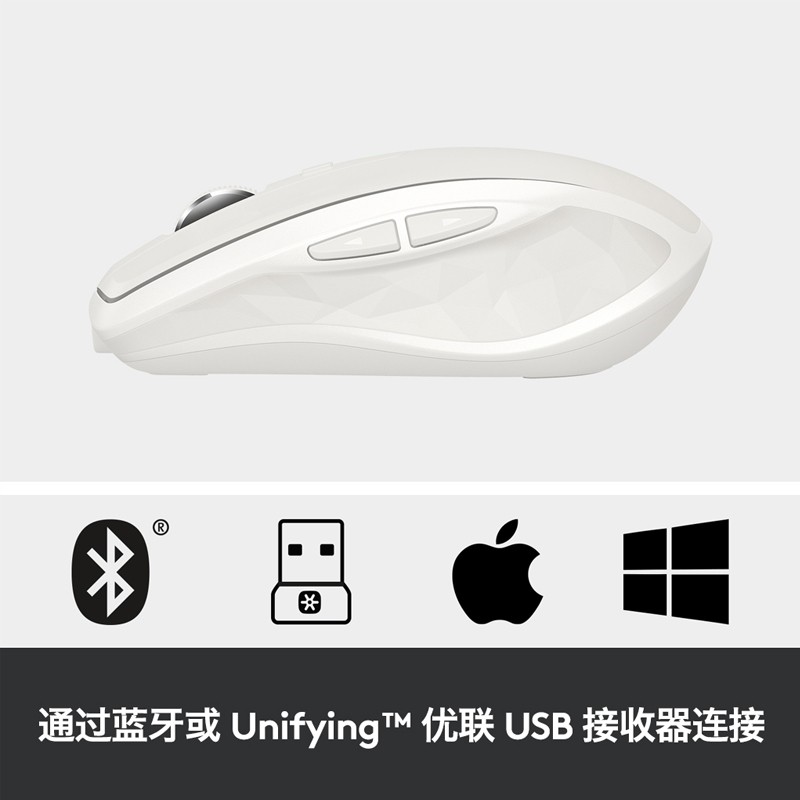 罗技(Logitech)MX Anywhere 2S 无线蓝牙优联双模跨计算机控制鼠标 快速充电 哑光白