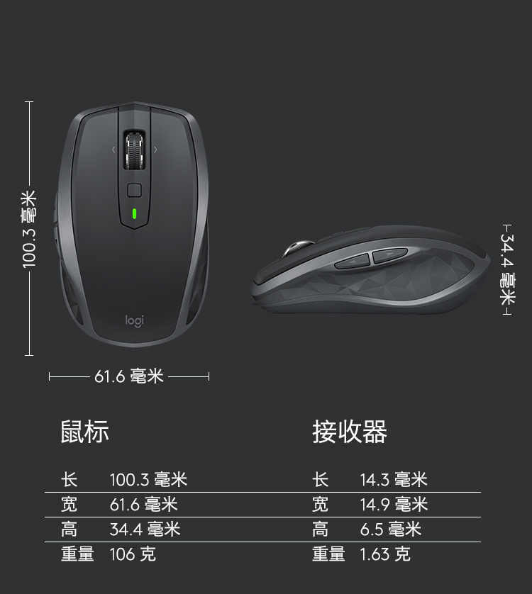商品名称:罗技(Logitech)MX Anywhere 2S 无线蓝牙优联双模跨计算机控制鼠标 快速充电 哑光白