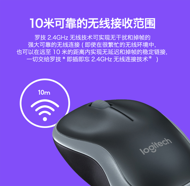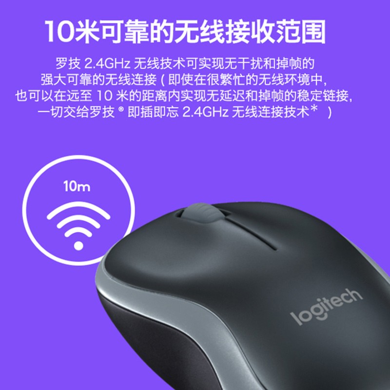 罗技(Logitech) M186无线鼠标 办公家用鼠标 灰黑色