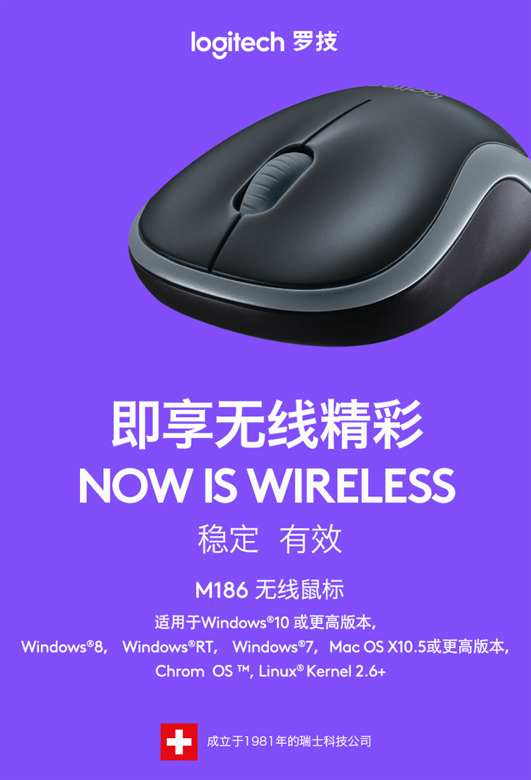 罗技(Logitech) M186无线鼠标 办公家用鼠标