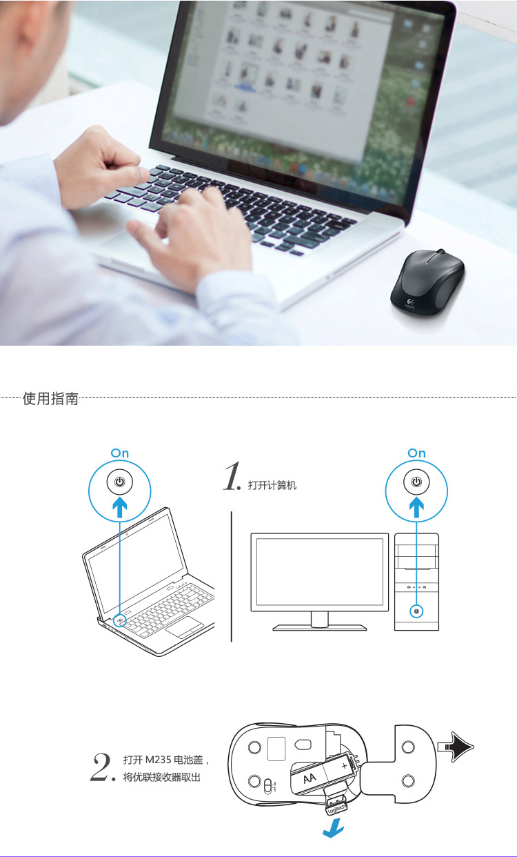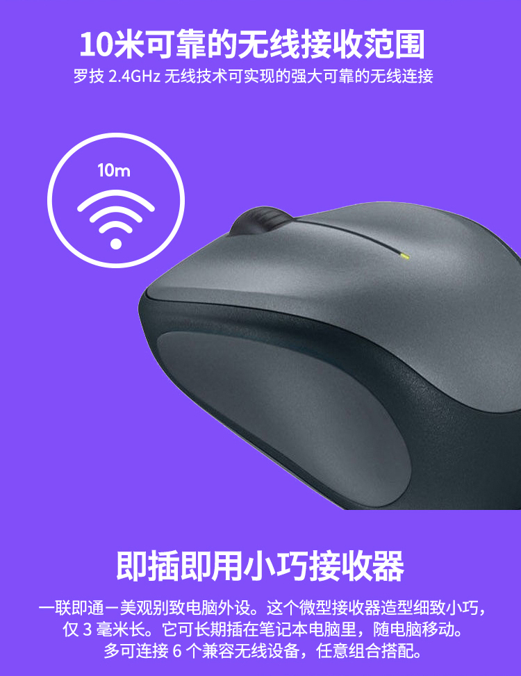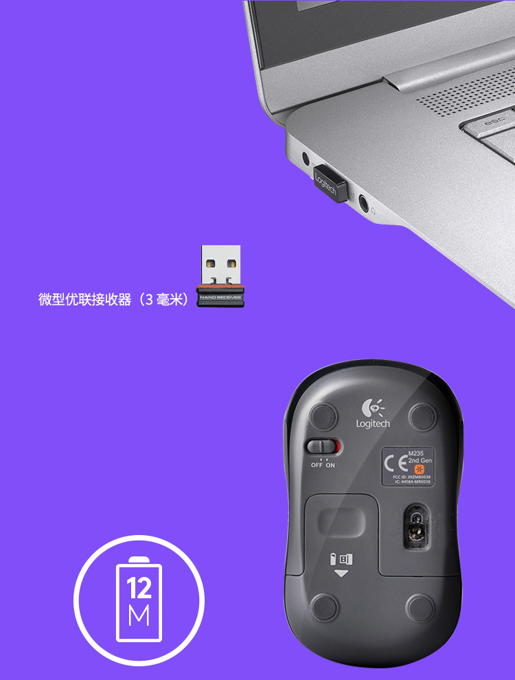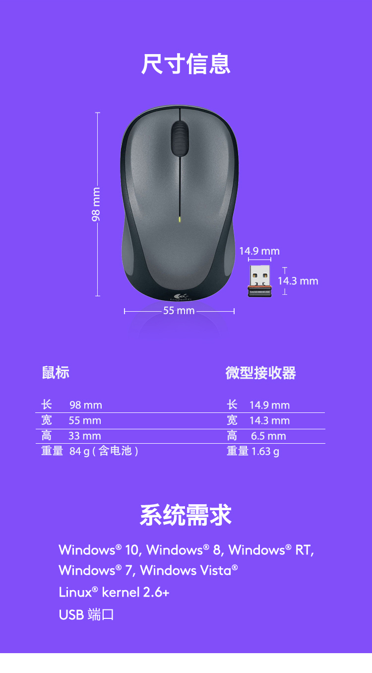 商品名称:罗技(Logitech) M235 无线光电鼠标2代 灰色