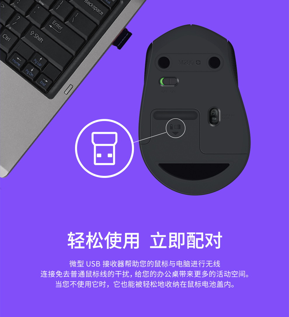 商品名称:罗技(Logitech) M280无线鼠标光电笔记本电脑商务办公家用鼠标蓝色
