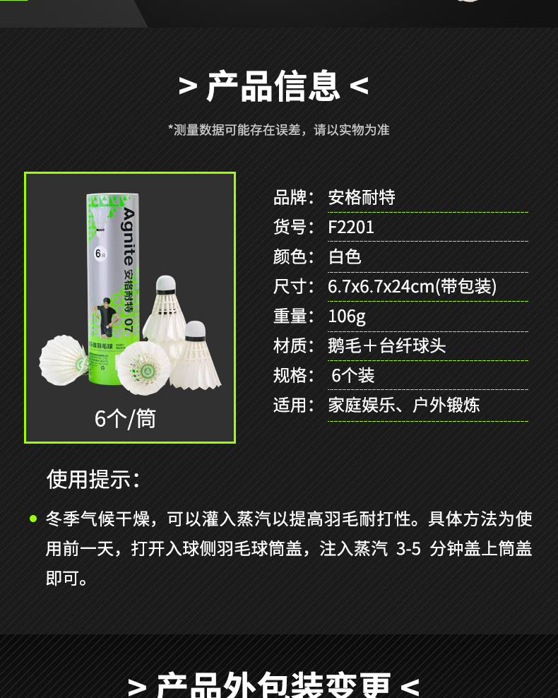 商品名称:安格耐特F2201羽毛球(白色)(6个/筒)