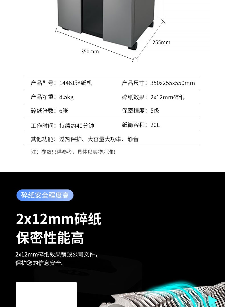 商品名称:得力14461碎纸机(金属灰)