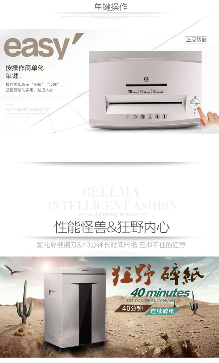 商品名称:得力9905碎纸机(金属灰)