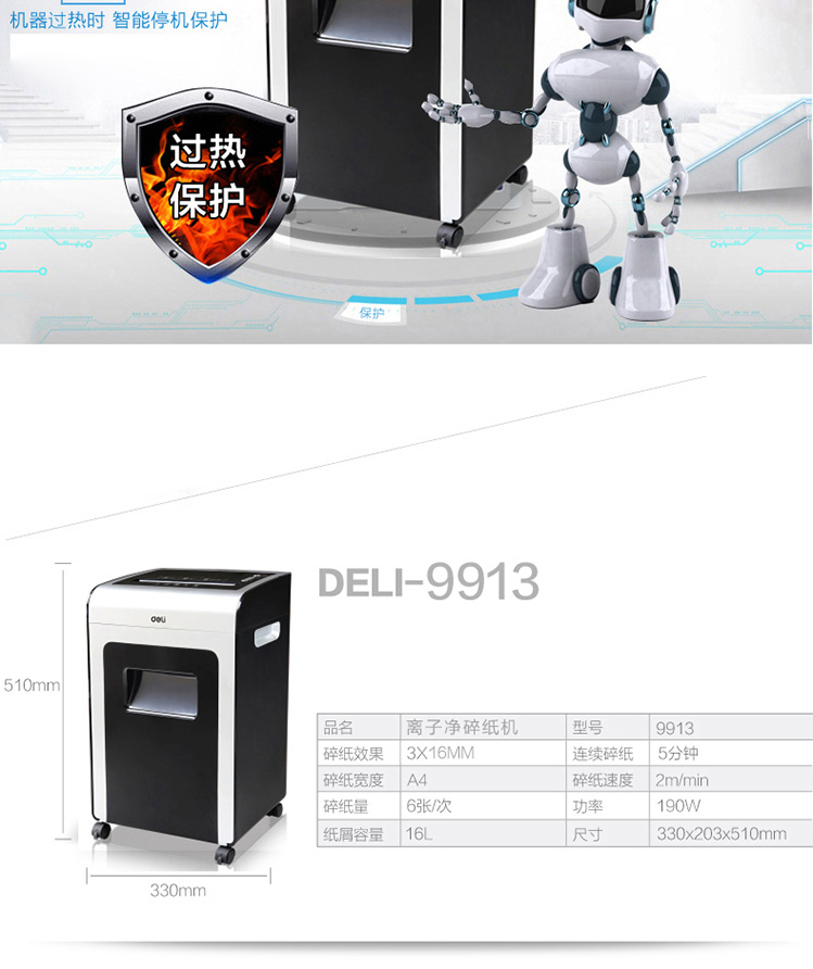 商品名称:得力9913碎纸机(黑)(台)