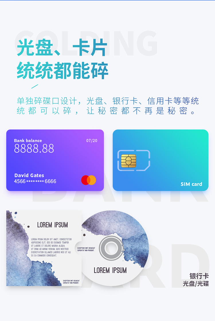 可碎介质:纸,光盘,卡,回形针