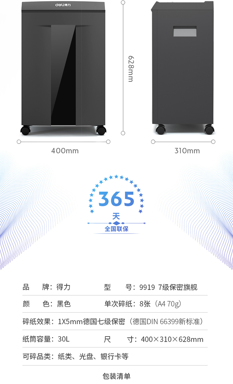 商品名称:得力9919碎纸机(深灰)