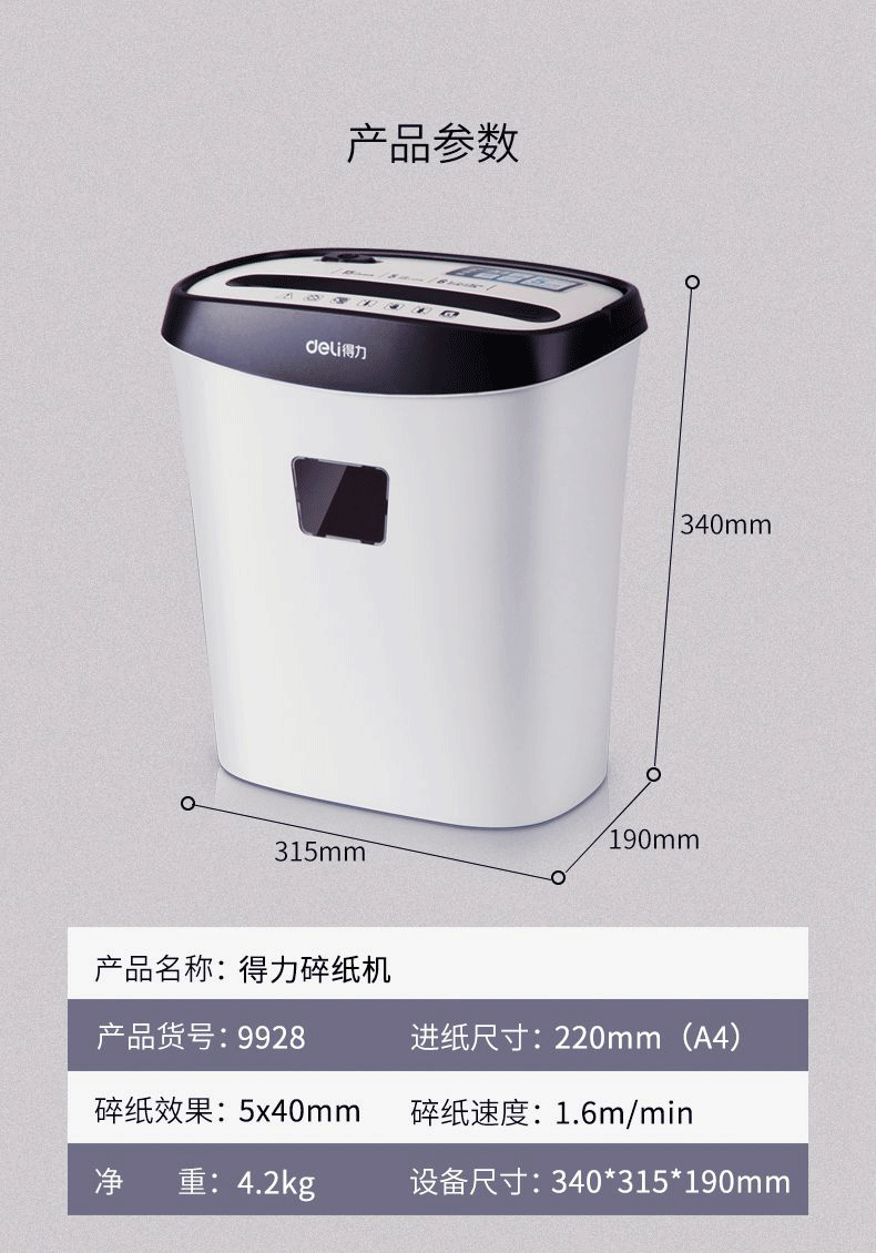 商品名称:得力9928碎纸机(白色)(台)