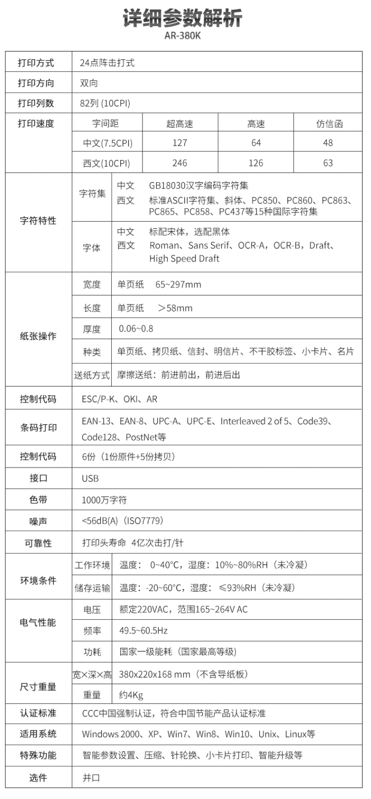 商品名称:标拓(Biaotop)AR380K针式打印机 出库单/销售单/发票/票据打印机