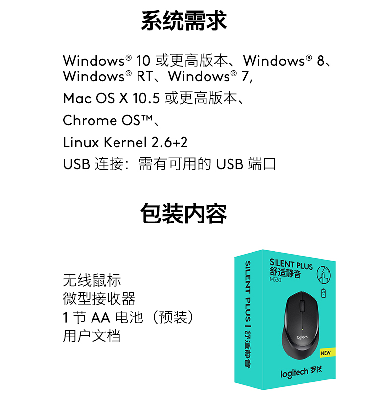 商品名称:罗技(Logitech)M330 鼠标 无线鼠标 办公鼠标 静音鼠标 右手鼠标