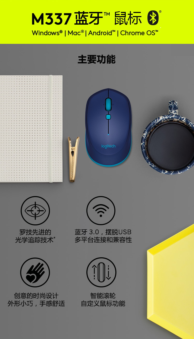罗技(Logitech) M337蓝牙无线鼠标笔记本台式电脑办公