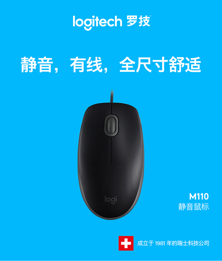 罗技(Logitech)M110 鼠标 有线鼠标 办公鼠标 静音鼠标 对称鼠标