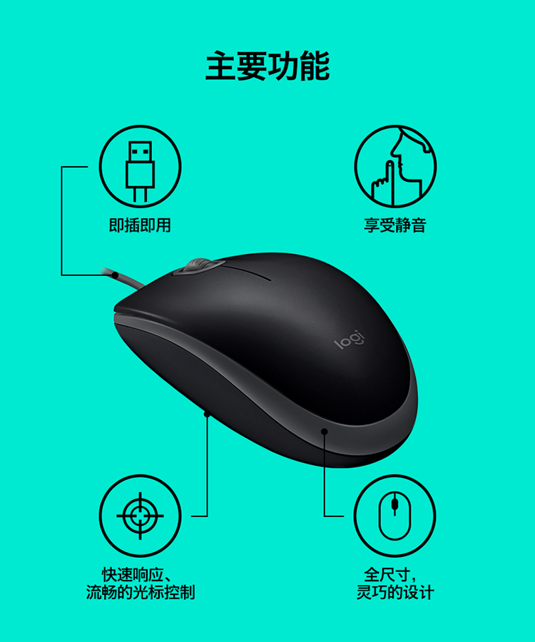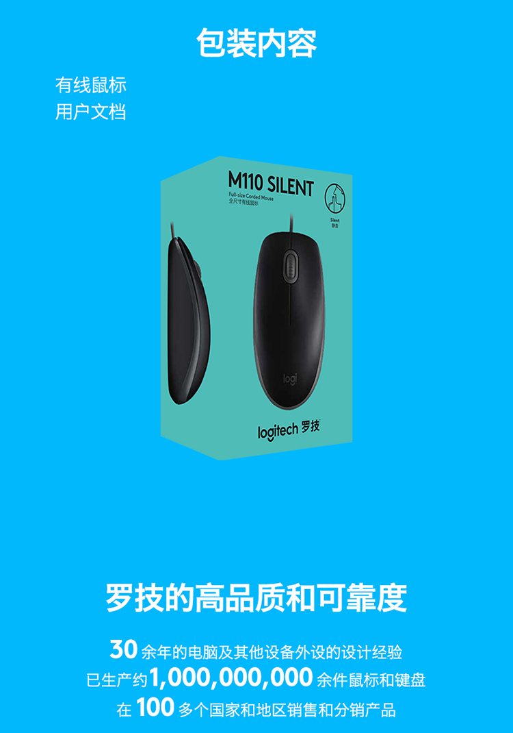 商品名称:罗技(Logitech)M110 鼠标 有线鼠标 办公鼠标 静音鼠标 对称鼠标