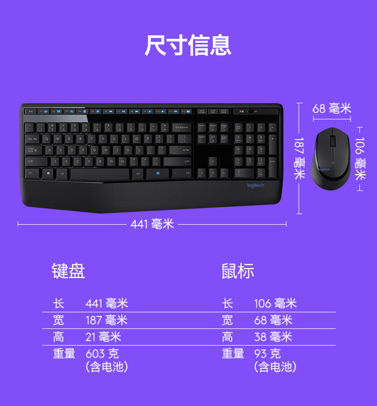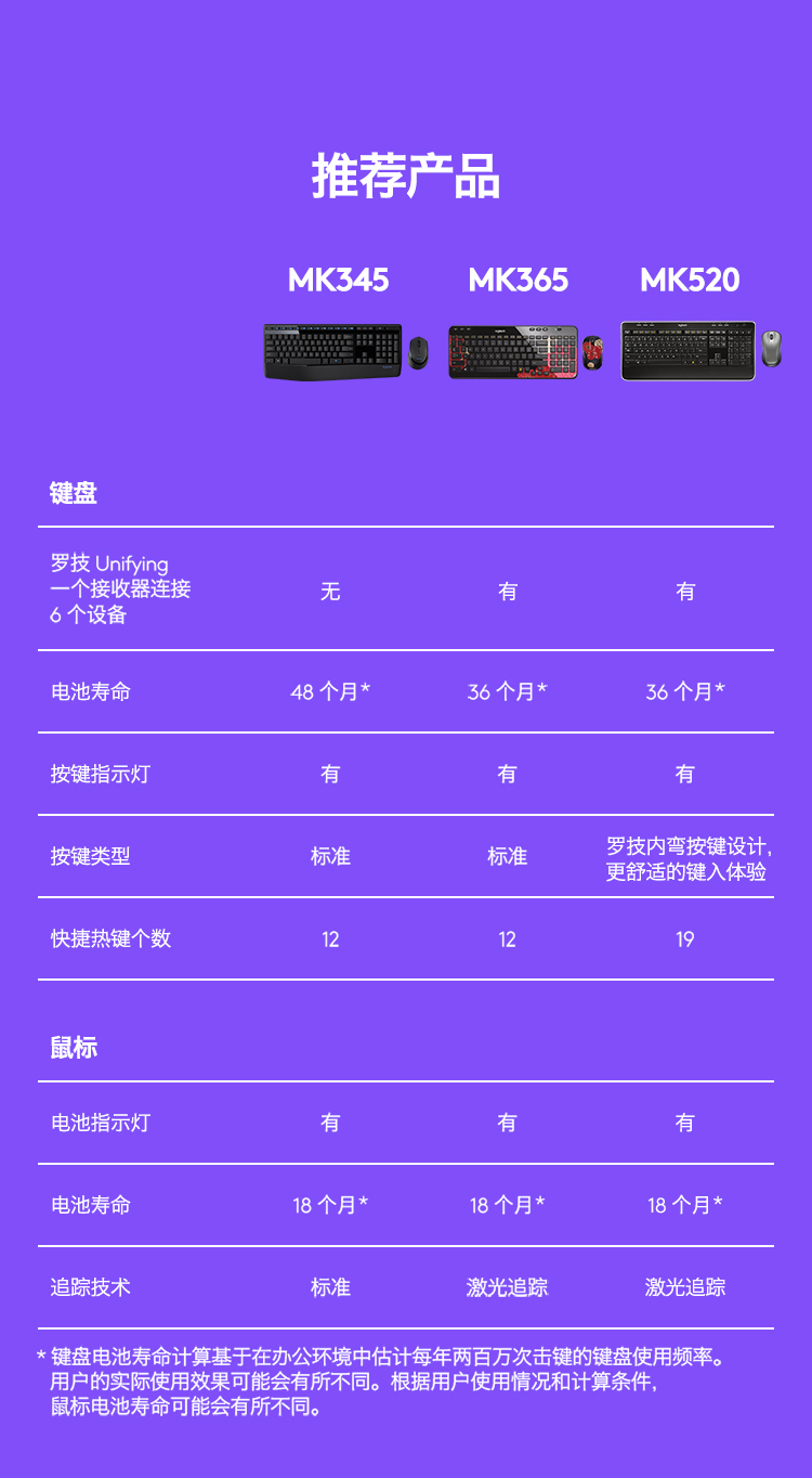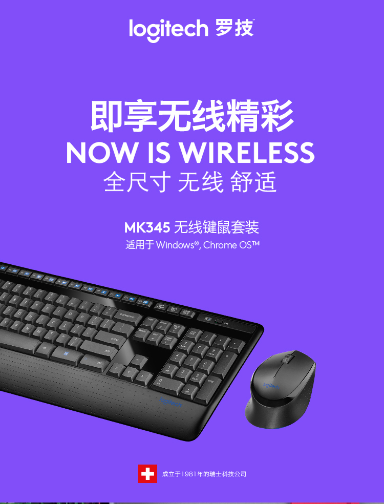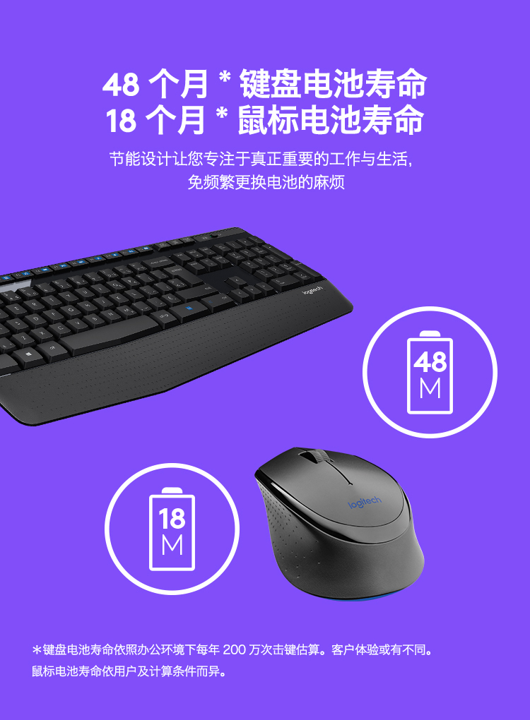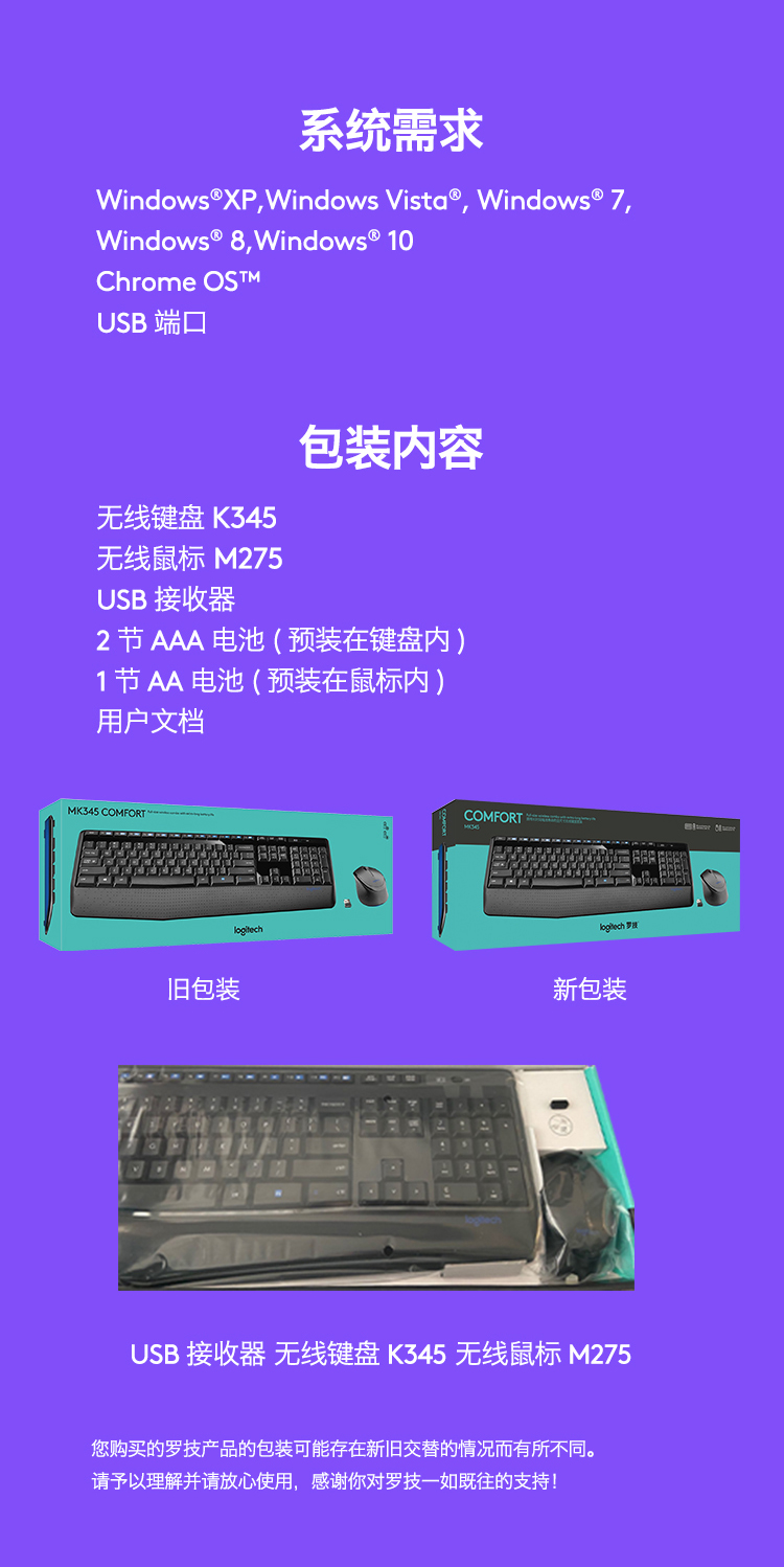 罗技(Logitech)MK345 无线键鼠套装 防泼溅 时尚高效