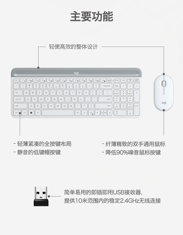 罗技(Logitech)MK470 键鼠套装 无线键鼠套装 全尺寸超薄 无线2.4G接收器